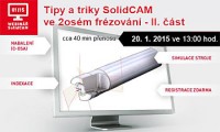 SolidCAM CZ ve spolupráci se společností SolidVision navazuje na úspěšnou sérii loňských webinářů. Pro rok 2015 bylo připraveno 10 témat, která budou průběžně představována. Prvním z nich jsou Tipy a triky SolidCAM ve 2osém frézování – II. část, vysílané dne 20. ledna 2015 od 13:00 do 13:45. Představeno bude například vytváření nulových bodů ... | Významný meziroční růst CAD Studia