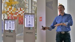 V úterý 18. října v poněkud neobvyklém pozdně odpoledním čase, korespondujícím s celosvětovým uvedením novinek 3D tiskáren Ultimaker, představila společnost 3Dwiser napjatě očekávanou stolní 3D tiskárnu Ultimaker 3. Zasloužil se o to především Tomáš Soóky, který před přítomnými obchodními partnery a několika specializovanými novináři ve zhruba 20 minutách zmínil všechny hlavní vlastnosti nových modelů 3D tiskáren. Především vyzdvihl využívání open source technologií. |