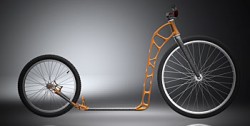 První koloběžka s unikátním rámem z 3D tiskárny byla vytištěna na Vysoké škole báňské – Technické univerzitě Ostrava. Prototyp s bionickou konstrukcí z korozivzdorné oceli je plně funkční a ve srovnání s klasickou koloběžkou zcela obstojí. Unikátní koloběžka vznikla na 3D tiskárně Renishaw AM400, která jemný kovový prášek zcela roztaví a následně ho klade do prostorového modelu po vrstvách. Rám o váze 3,2 kilogramu je zhruba o čtvrtinu lehčí, než kdyby byl vyroben tradiční metodou. |
