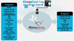 Mezi vylepšenými převaděči najdeme UG NX 3D do Rhina, jenž umožňuje převod dat ze souborů Unigraphics/NX do softwaru Rhinoceros bez nutnosti licence pro NX. Překládá všechna 3D data, z toho mj. součásti a sestavy (*.prt) nebo strom sestav jako vrstvy. Data lze filtrovat podle typu entity, viditelnosti a vrstvy, vybrat si jde umístění os a připojit povrchové entity. Nechybí možnost konverze grafického zobrazení PMI. Rhino 3D do Solidworks exportuje součásti a sestavy Solidworks a stejně jako Rhino 3D do PDF 3D a Rhino 3D do Parasolidu rovněž převádí všechna 3D data. ... |