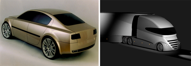 Skice (obr.7) tvorili základ – nápad podľa ktorého vznikol definitívny návrh dizajnu. Voľne modelovaným plochám boli priradené hrúbky stien a telesám vlastnosti materiálov (obr.8). Každému priestorovému objektu môžu byť priradené fyzikálne a logické vlastnosti, či už automaticky z existujúcich knižníc, podľa existujúcich pravidiel alebo individuálne podľa zadania dizajnéra.