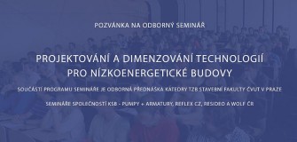Pořádající společnosti KSB – pumpy + armatury, Reflex CZ, Resideo a Wolf ČR zvou zájemce na odborný seminář zaměřený na podporu projekční činnosti v oblasti technických zařízení budov. Součástí programu bude odborná přednáška lektorů z Katedry technických zařízení budov Fakulty stavební ČVUT v Praze.